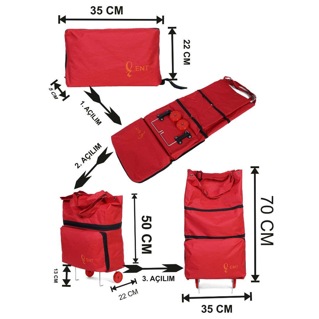 NERGİS Model 2 Tekerli ve Katlanabilir Alışveriş ve Seyahat Çantası -Kırmızı